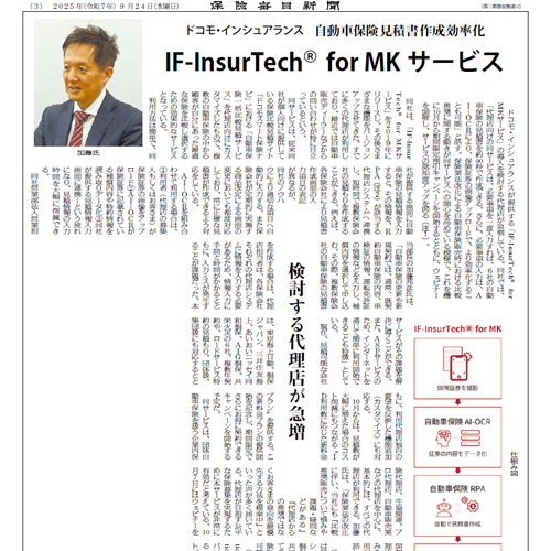 アイリックコーポレーション様、三井ダイレクト様、ドコモ・インシュアランスによる共同開発により、3社の技術・ノウハウを融合することで自動車保険の見積もりに活用可能なデータ解析を実現しました。